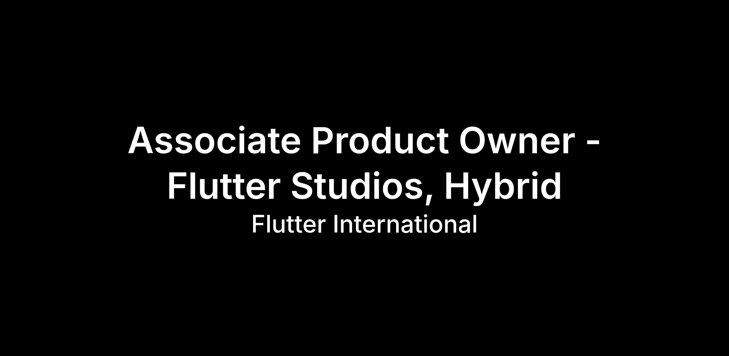 The Associate Product Owner will play a key role in the Flutter Studios Technology tribe by completely own every aspect of a project from discovery to deployment. The role involves working closely alongside peers under the Flutter International regime and Flutter Studios tribe.