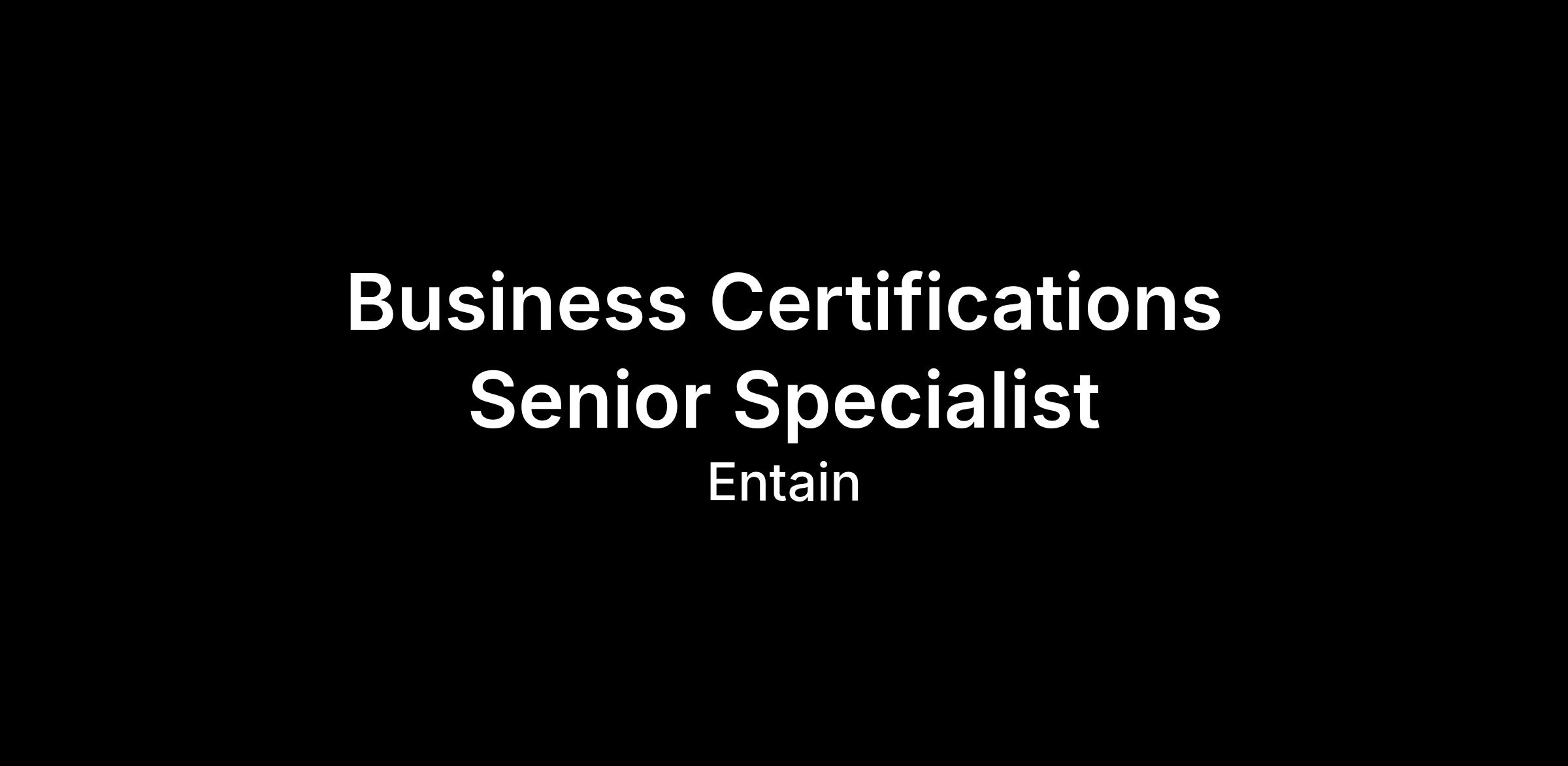 Business Certifications Senior Specialist