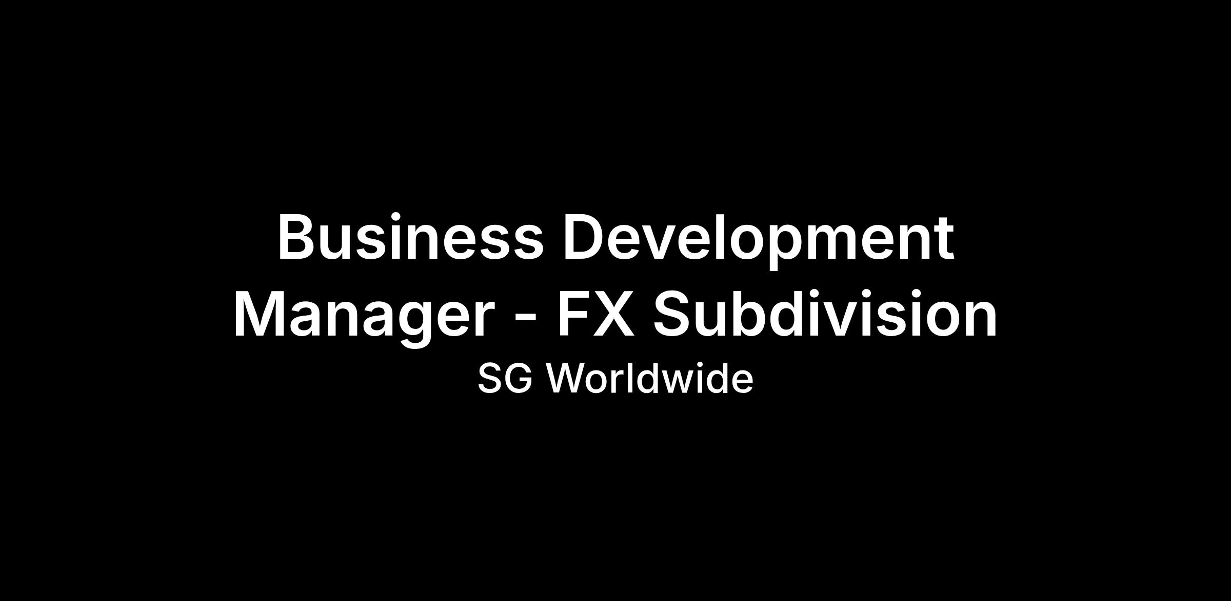 Job Title: Business Development Manager - FX Subdivision