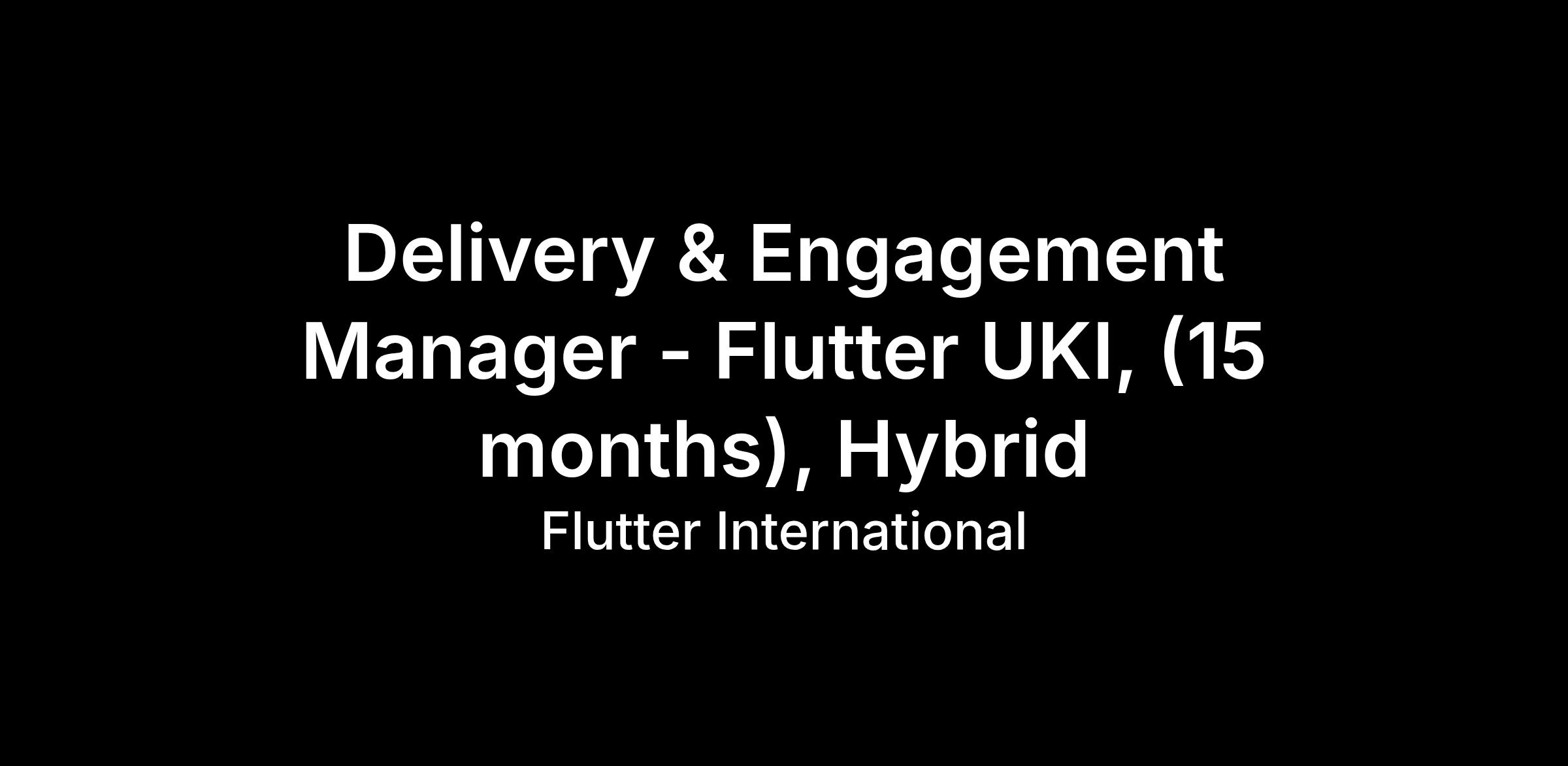 Delivery & Engagement Manager - Flutter UKI, (15 months), Hybrid