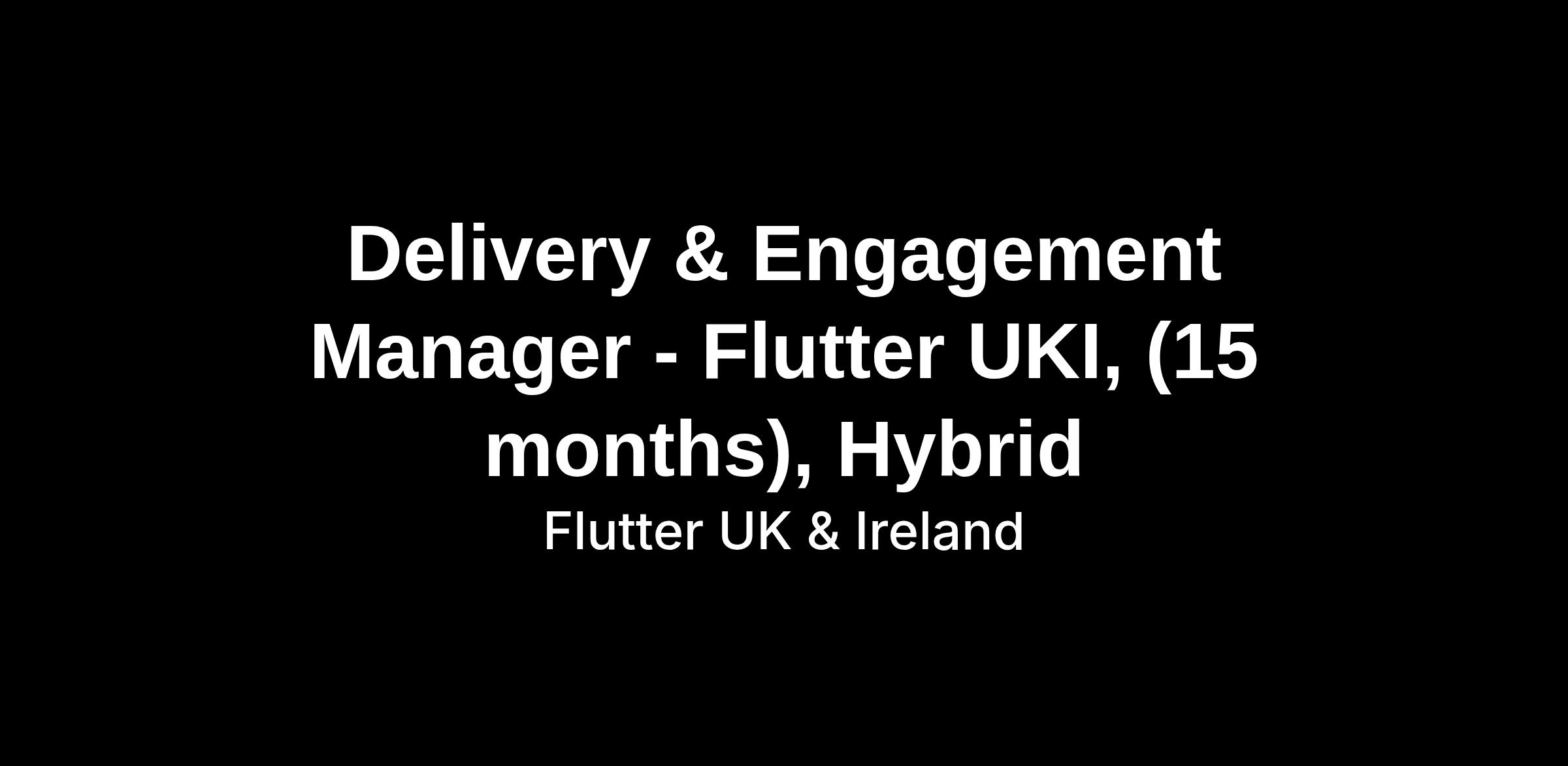 Delivery & Engagement Manager - Flutter UKI, (15 months), Hybrid