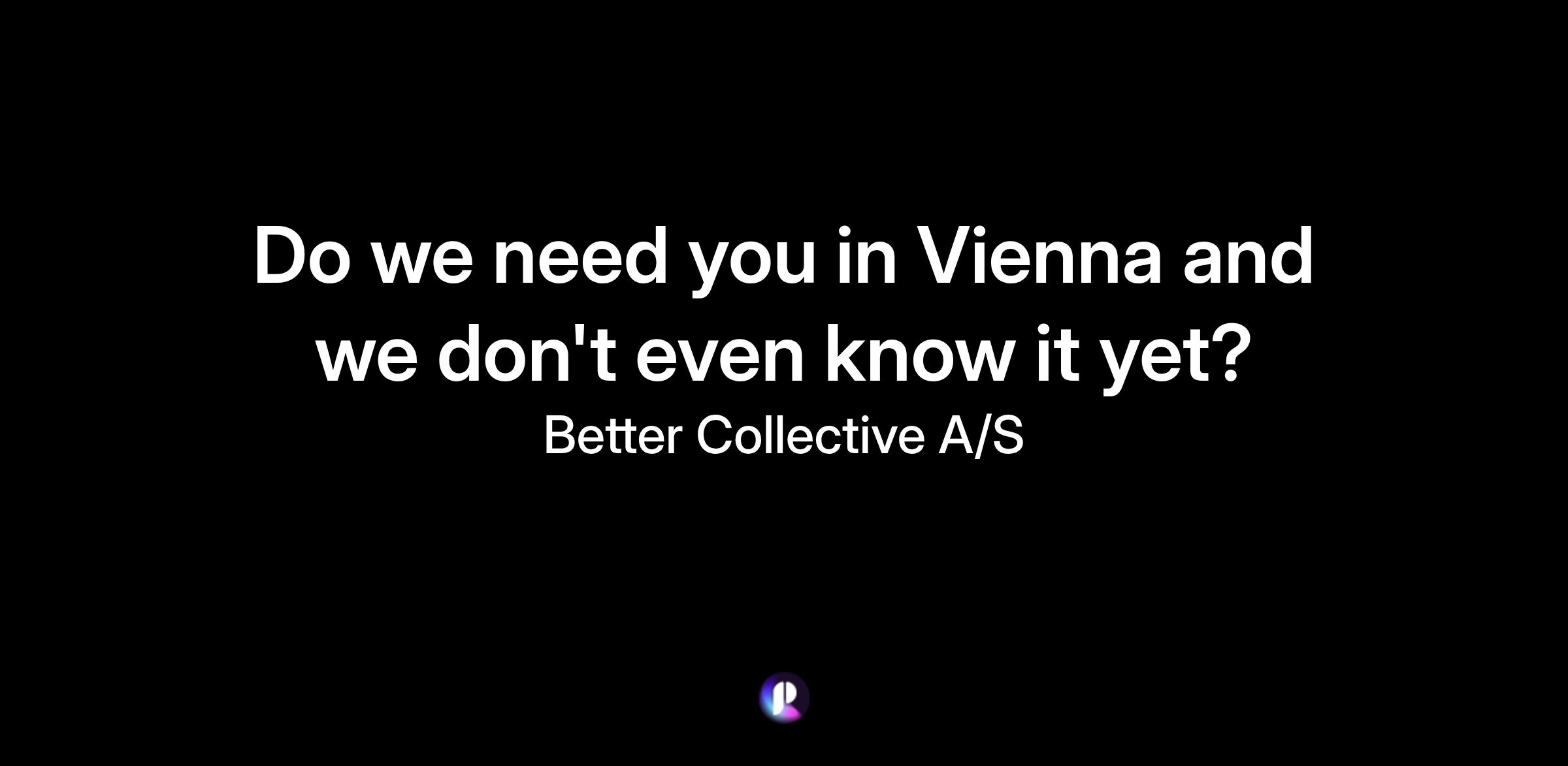 Thank you for visiting Better Collective. We're happy to know that you want to join our team and take part in our journey to become the leading digital sports media group. We always like to hear from you and if you did not find your dream job among our open positions do not hesitate to send us an unsolicited application.