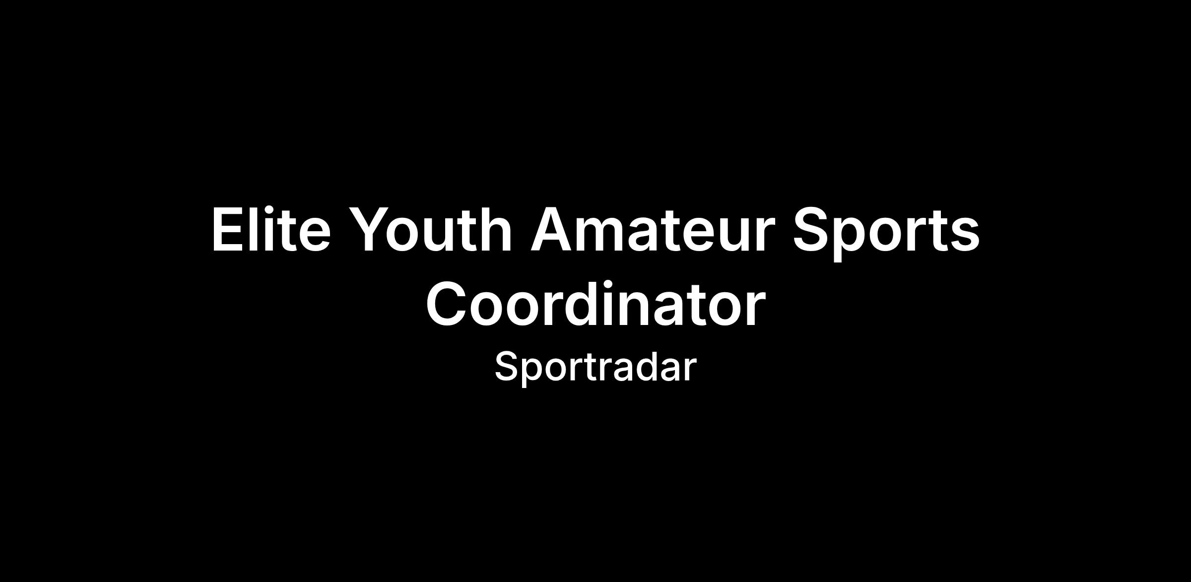 - Due to exciting growth here at Sportradar, we are looking for an Elite Youth Amateur Sports Coordinator to help improve our product offering for our Grassroots & Amateur Sports division.