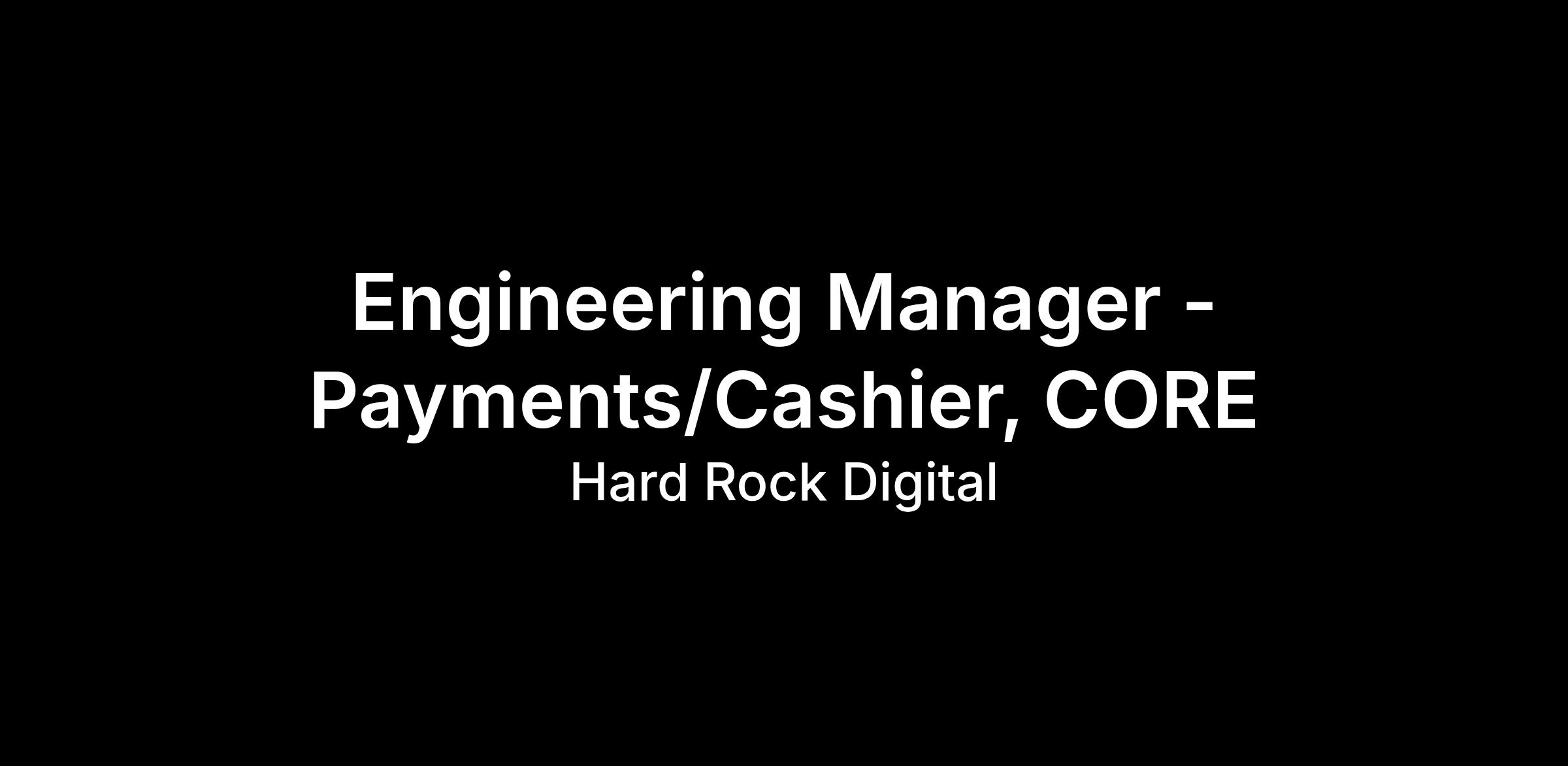 We are looking for an Engineering Manager to lead our Payments and Cashier team within the CORE unit at Hard Rock Digital. You will own people leadership, team health, and engineering excellence for the pod that builds and operates our cashier, payment methods, and related platform capabilities that are critical to the Hard Rock Bet experience across sportsbook and casino.