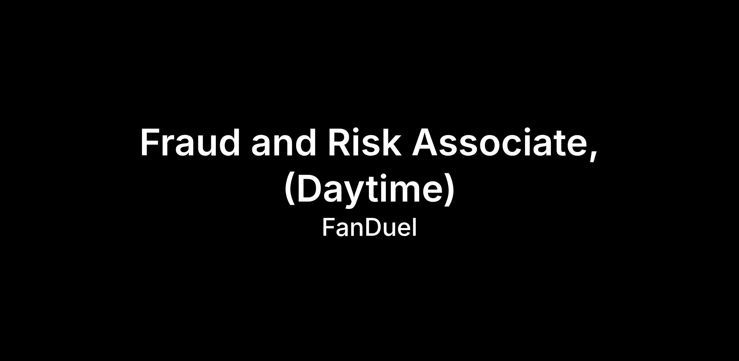 Fraud and Risk Associate, (Daytime)
