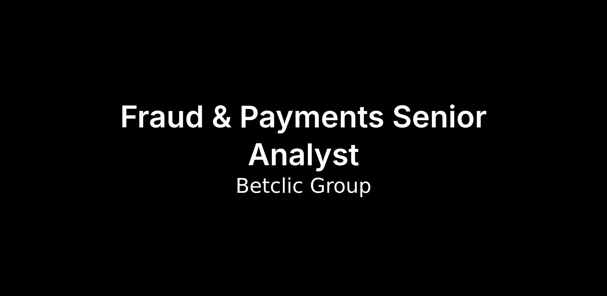 Fraud & Payments Senior Analyst