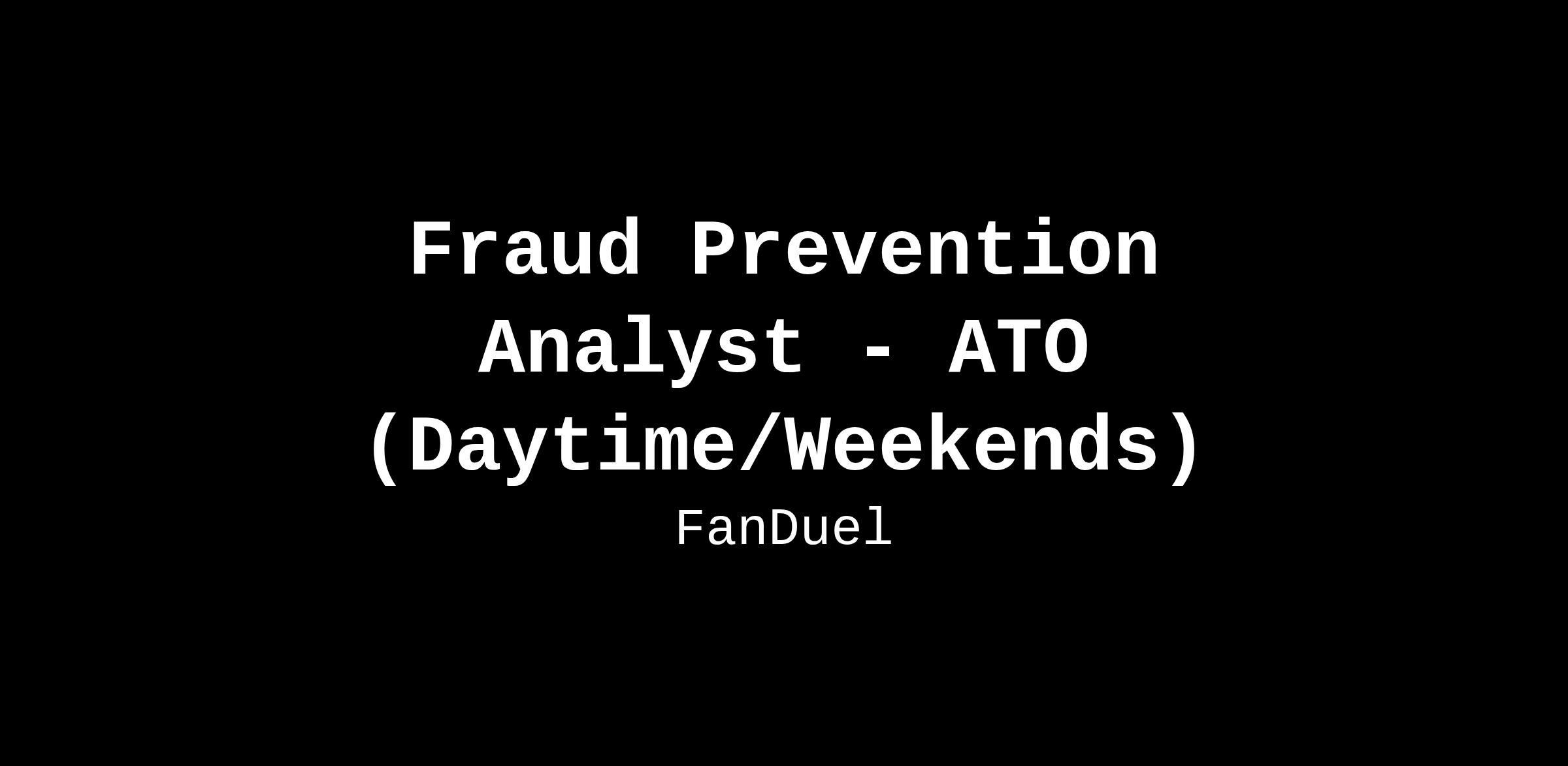 Fraud Prevention Analyst - ATO (Daytime/Weekends)