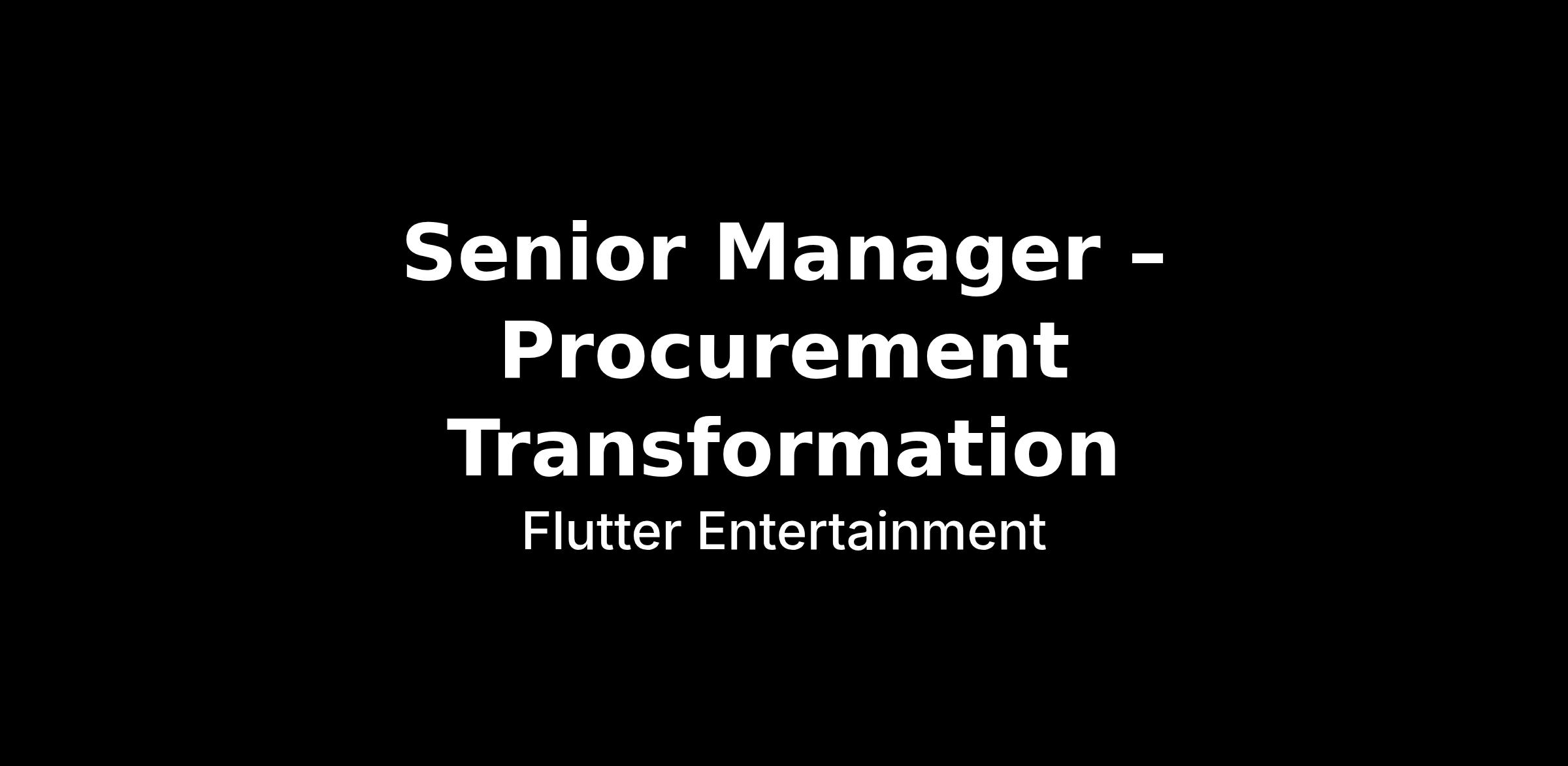 Job title: Senior Manager - Procurement Transformation