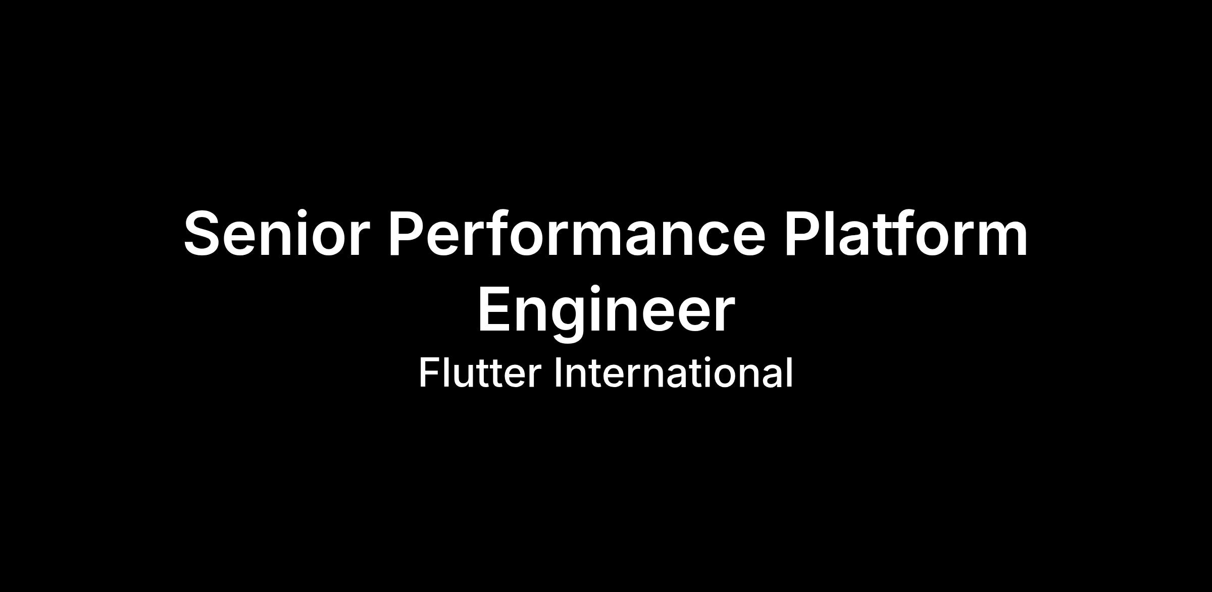 Job Title: Senior Performance Platform Engineer