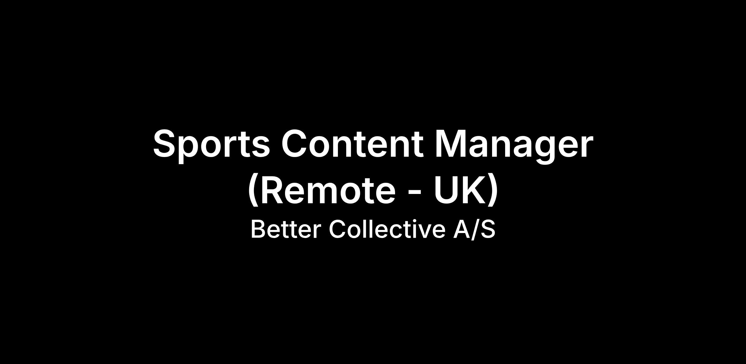 Sports Content Manager (Remote - UK)