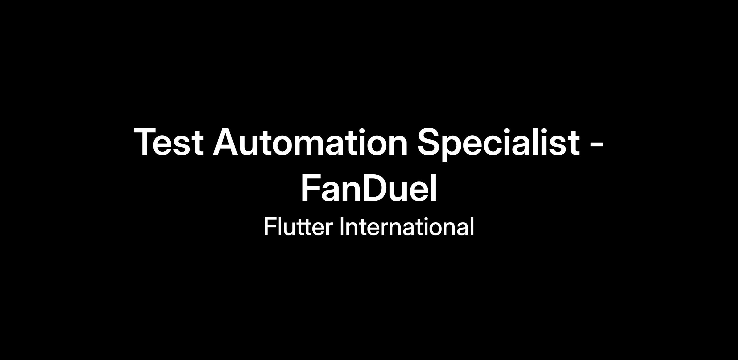 We are looking for a Test Automation Specialist to be an instrumental part of delivering a transformational automation program across the FanDuel Group. This is a unique opportunity for a passionate, curious candidate to join a fast-moving team and shape the future of automation at FanDuel.