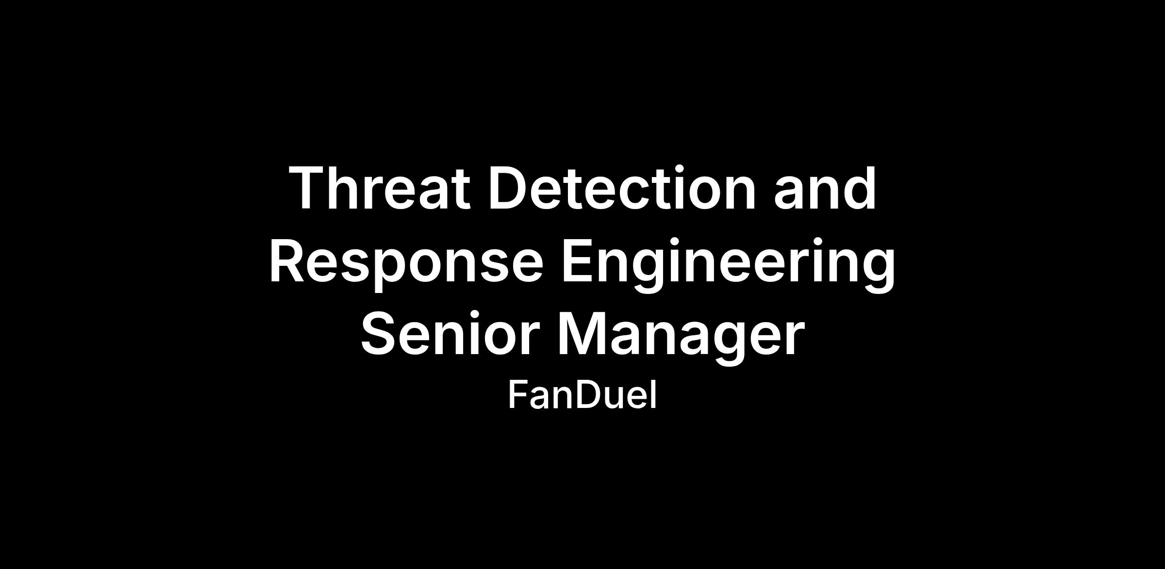 We are seeking a Senior Engineering Manager - Threat Detection and Response to lead and evolve our threat detection, threat intelligence, and response capabilities across our organization.